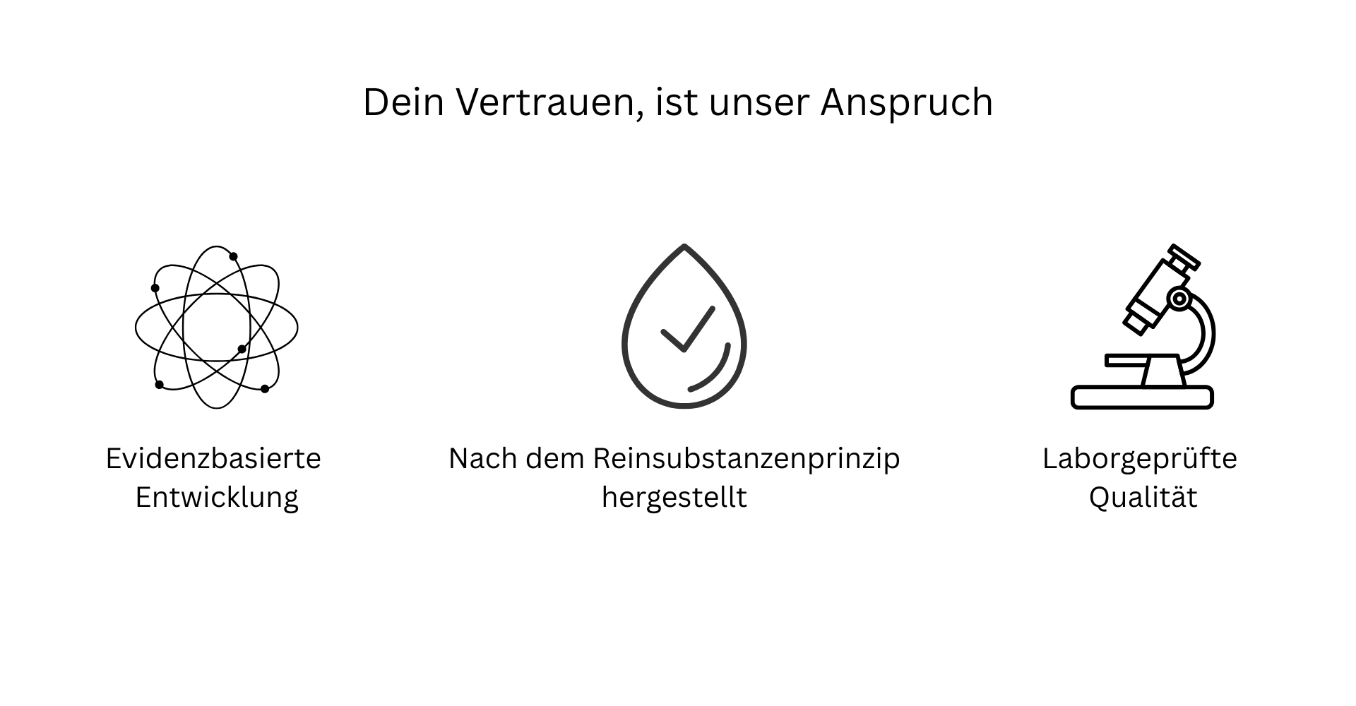 Sinnvolle evidenzbasierte Nahrungsergänzung -rein, hochwertig und ohne Zusatzstoffe unter höchsten Qualitätsstandards hergestellt.